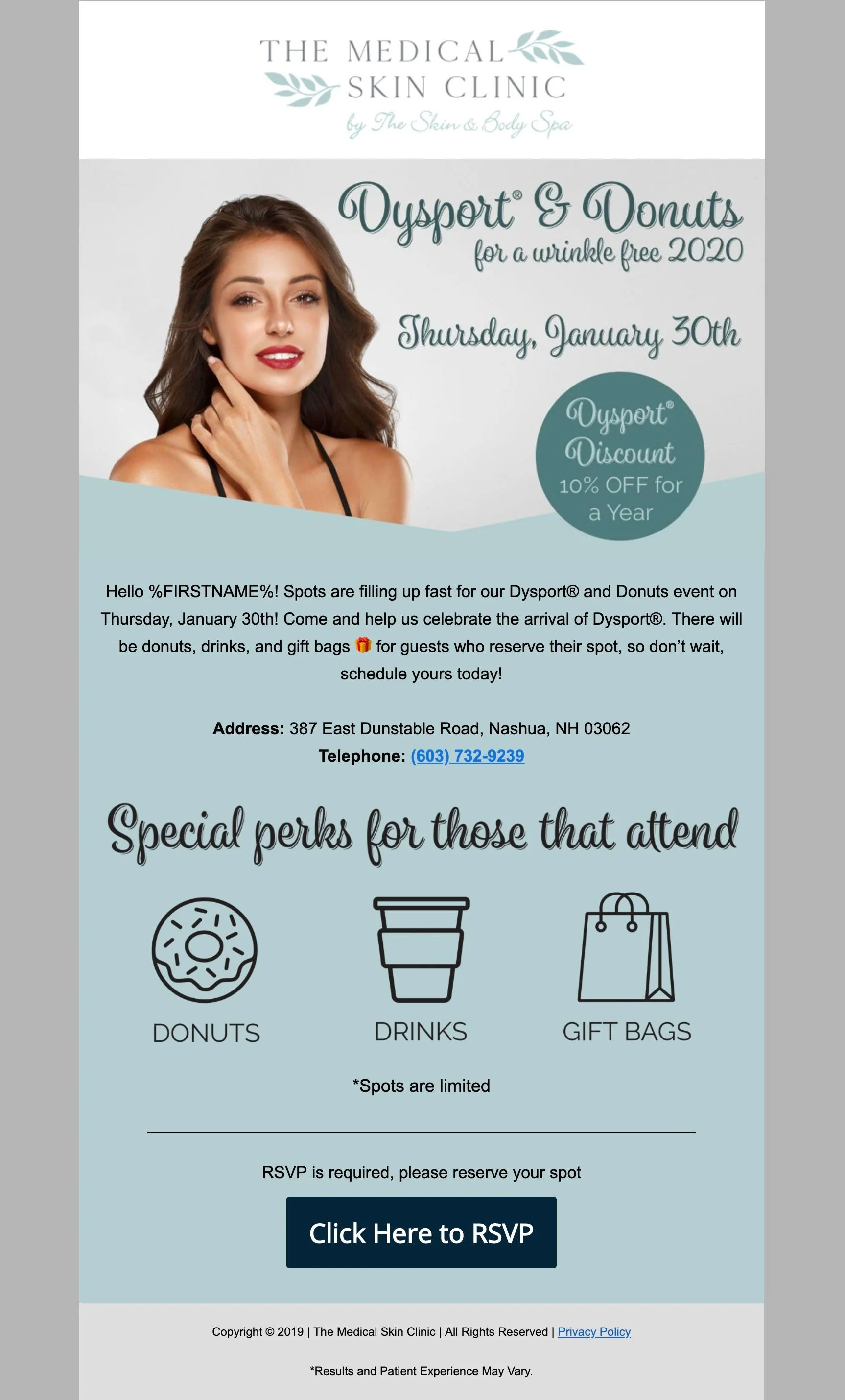 These email blasts were part of an email automation sent to the client’s database and invited potential customers to their event’s landing page. A follow-up confirmation email was sent to those who RSVP to the event.
